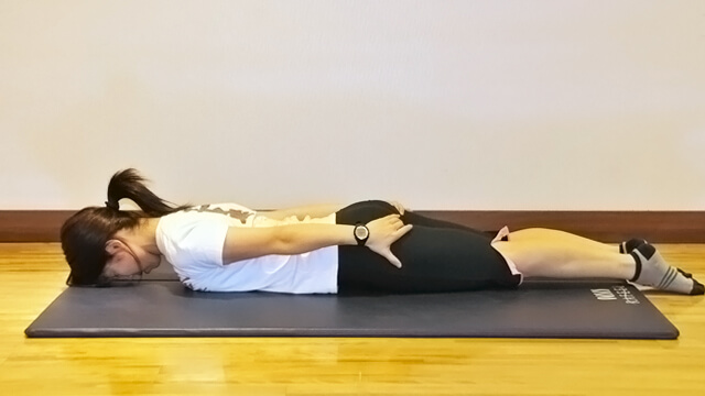 ④そのまま一度呼吸をしてからゆっくり身体をうつぶせの状態に戻します。